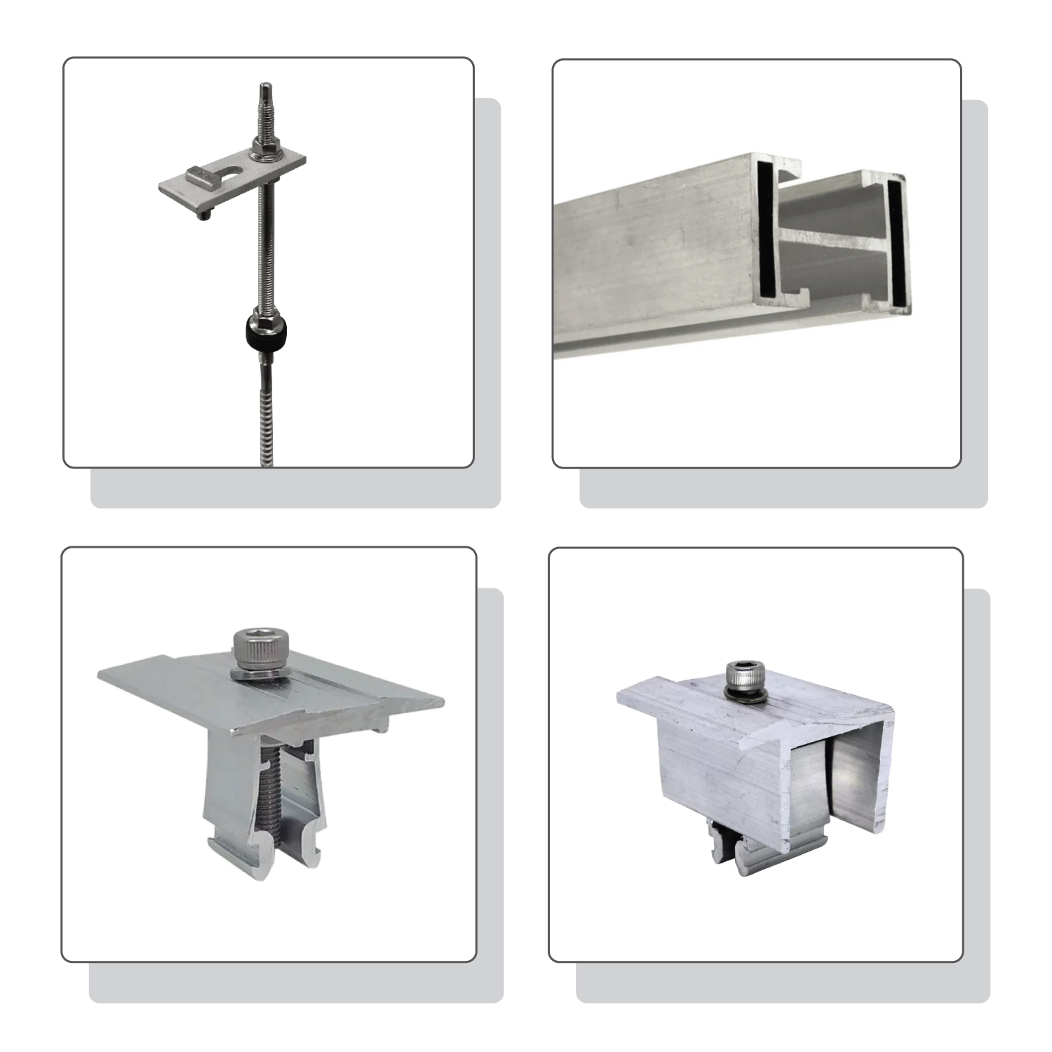 Utiliza-se a liga 6063 do alumínio, o que é uma liga de alta resistência e dureza compatível para fixação de placas solares em telhados (resistente à tempestades, ventos fortes, etc).